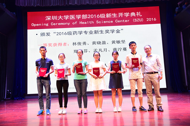 医学院党委副书记肖向东宣读了奖学金有关文件,企业代表以及医学院副院长汪天富、药学系主任贺震旦分别为获得 “新产业生物医学工程专项奖学金”、“2016级药学专业新生奖学金” 的学生颁奖。