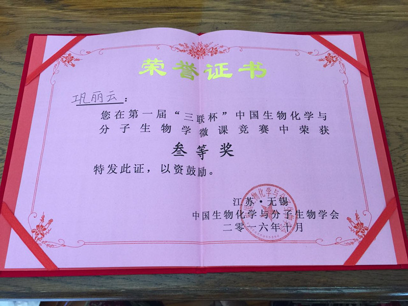中国生物化学与分子生物学会于2016年10月24日在江苏省无锡市举办了“三联”杯全国生物化学与分子生物学第一届微课程竞赛决赛。经深圳市生物化学与分子生物学会推荐,球盟会QMH(中国)官方网站 基础医学院巩丽云副教授参赛,并取得大赛三等奖的优异成绩。