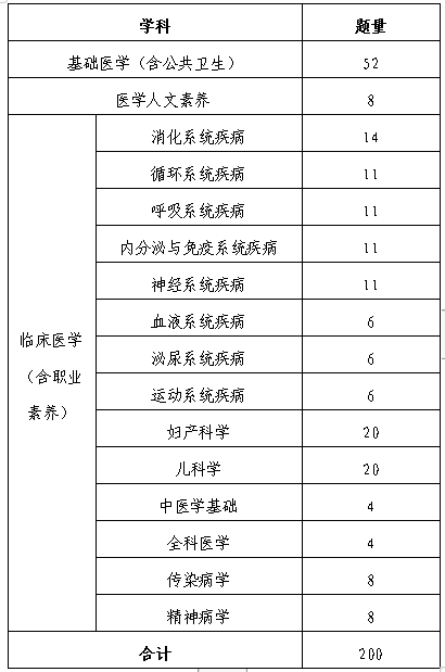 4、考试内容:教学大纲要求掌握的内容,并结合全球医学教育最基本要求、《中国本科医学教育标准—临床医学专业 (2022 版)》,还应适当涉及考察应用型、人文素养类内容。