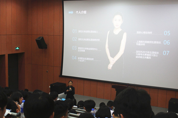 在结束材料学院参观之行后,深圳大学就业指导中心主任助理、优果生涯创始人李羚颖老师以“人工智能的时代如何选择适合自己的专业”为题开展了精彩讲座。她从大学专业选择中的决策瘫痪现象讲起,用详实的例证和数据对同学们未来的专业选择进行了透彻的分析。