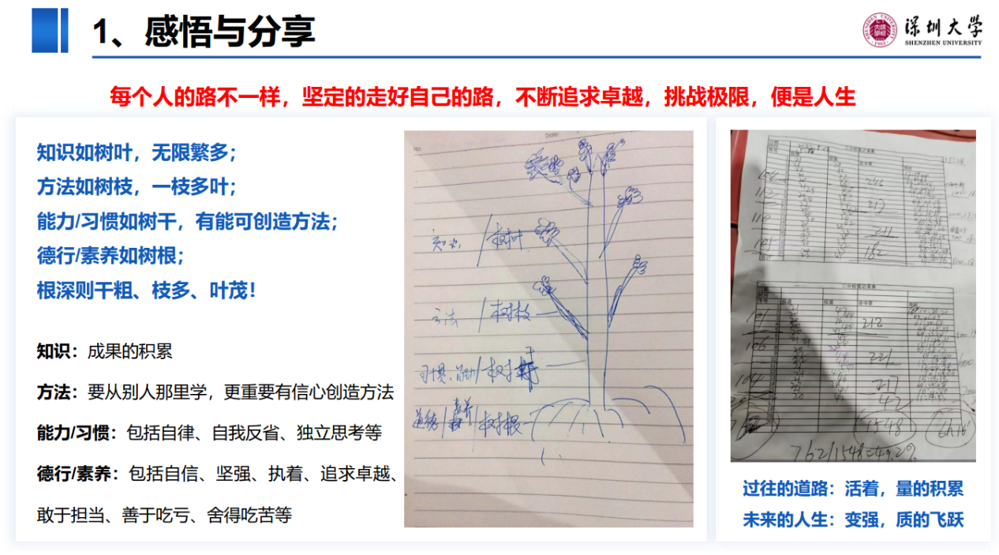 最后,黄老师跟同学们分享了适用于科研、学习和生活的“一棵树”人生感悟:知识如树叶,方法如树枝,能力/习惯如树干,品德和素养如树根,从树根开始做起,培养好自己的品行,养成好习惯,提升能力,去创造方法,获取枝繁叶茂的知识。本次讲座不仅为同学们打开了一扇了解机器人的窗口,使同学们对机器人技术及未来发展有了更全面、更深入的了解,同时也激发了他们对机器人技术的学习和研究的浓厚兴趣,为他们的生涯规划提供了宝贵的指导,进一步激发同学们对生活的憧憬和对梦想的追求。更期待这些年轻的心灵能够在未来的学习和生活中,不断探索、不断进步,成为各自领域的专业人才,为国家、为社会做贡献。本次讲座在热烈的掌声中圆满结束。