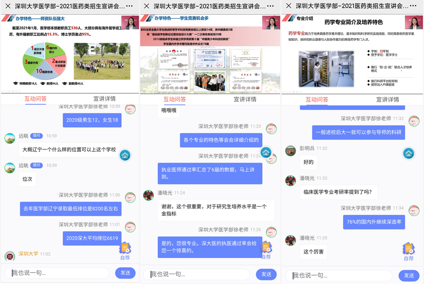 从现场互动情况来看,本次活动参与人数较多,学生及家长主要关心的问题有球盟会QMH(中国)官方网站 招生计划、报考学科要求、专业就业率及就业方向、博硕士点的设置、升学率、奖学金覆盖率、职业医师通过率等。老师们也逐一进行了详细解答。另外本次宣讲可以在高考宝平台随时随地重复回看(观看宣讲链接://www.shouboke.tv/gaokaobao/index.html?from=groupmessage#/pcVideo?id=AHQoA4A)