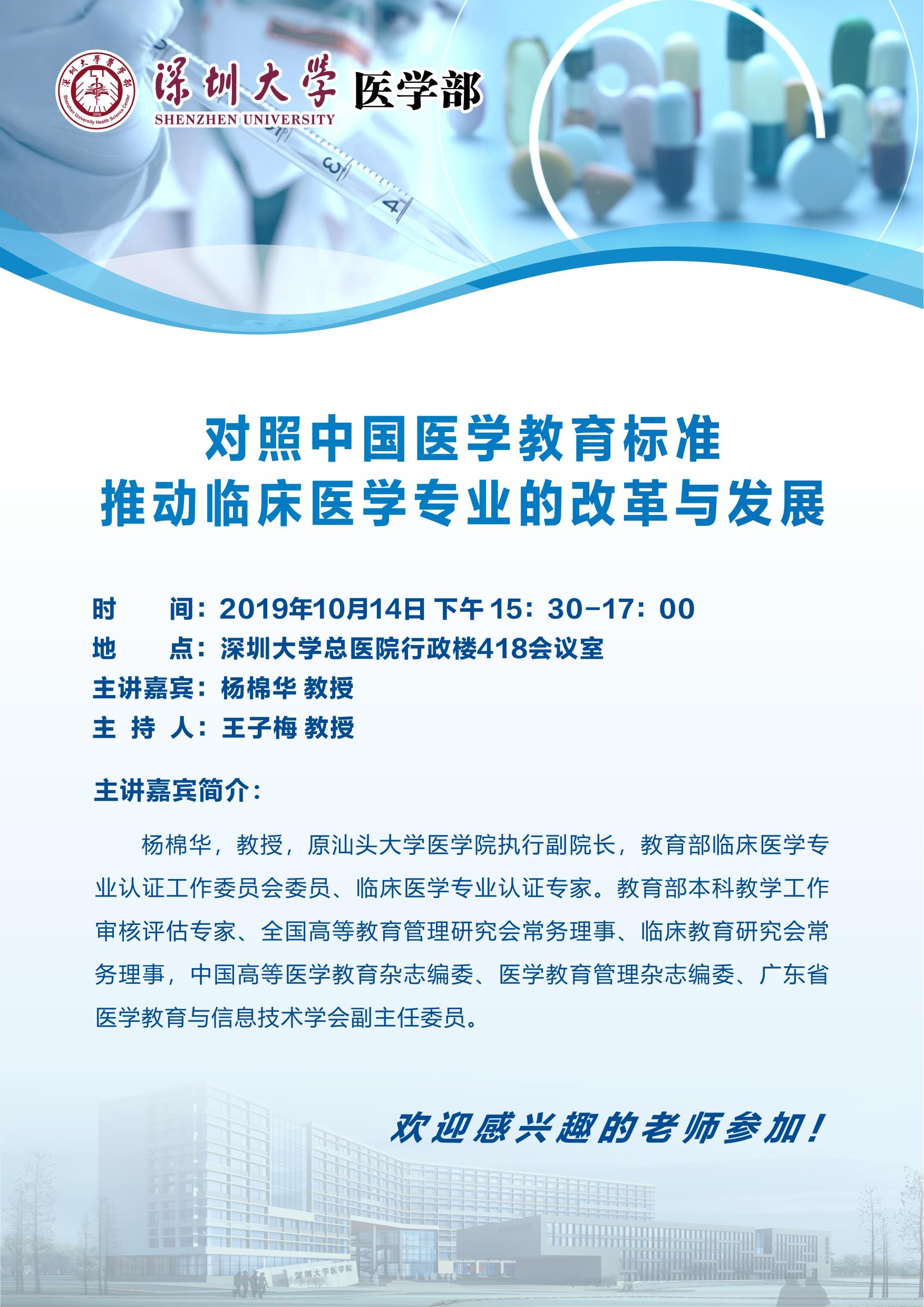 医学教育讲座《对照中国医学教育标准,推动临床医学专业的改革与发展》