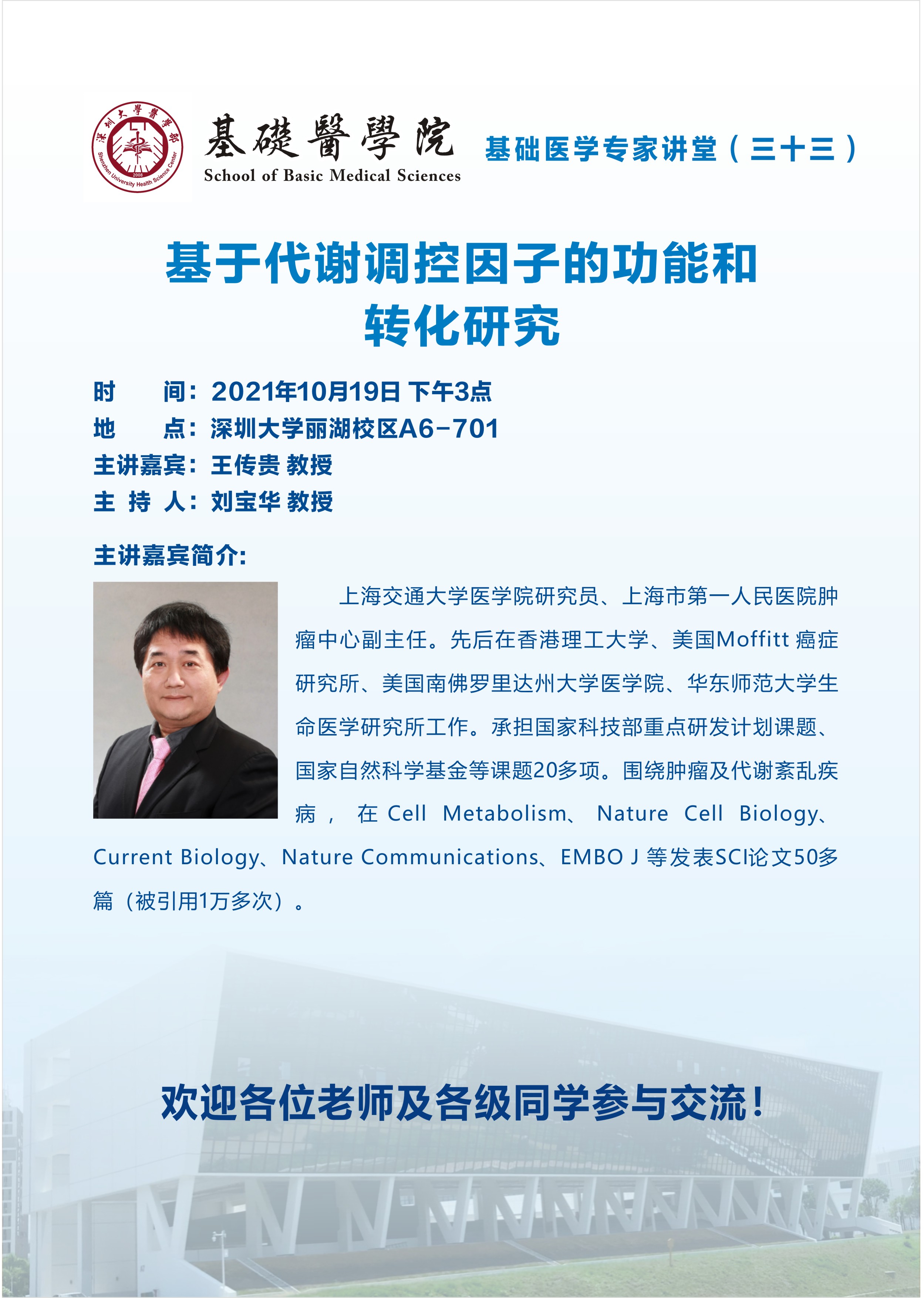 基础医学专家讲堂(三十三):基于代谢调控因子的功能和转化研究