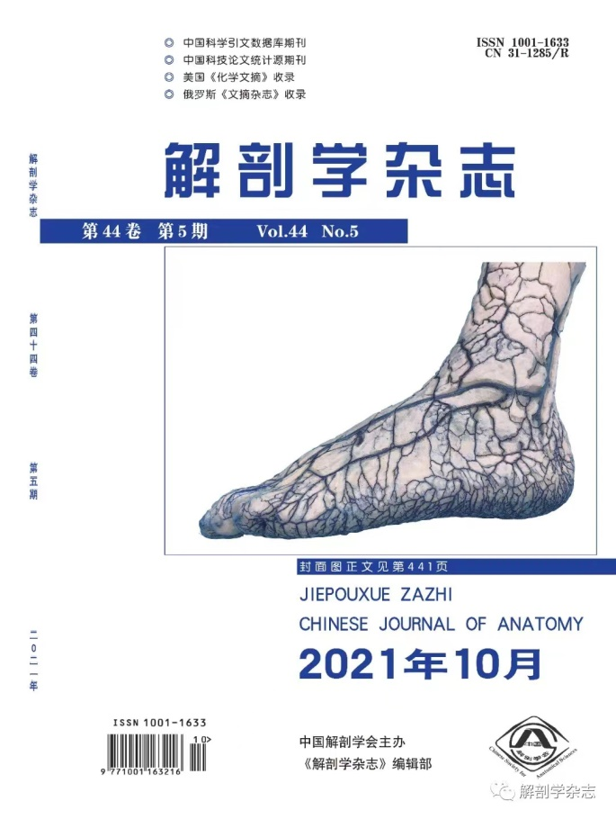 该标本制作方法得到了解剖学杂志编辑部的认可,并将文中由胡徐意老师制作的足部静脉标本图片选为当期《解剖学杂志》杂志封面图片。