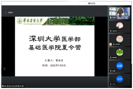 基础医学院刘宝华院长作结营仪式致辞,他们对相聚在线上的所有营员表示感谢,鼓励同学们选择深圳,鼓励同学们积极抓住学术交流机会,并期待将来与各位优秀大学生在深圳大学丽湖校区相遇。