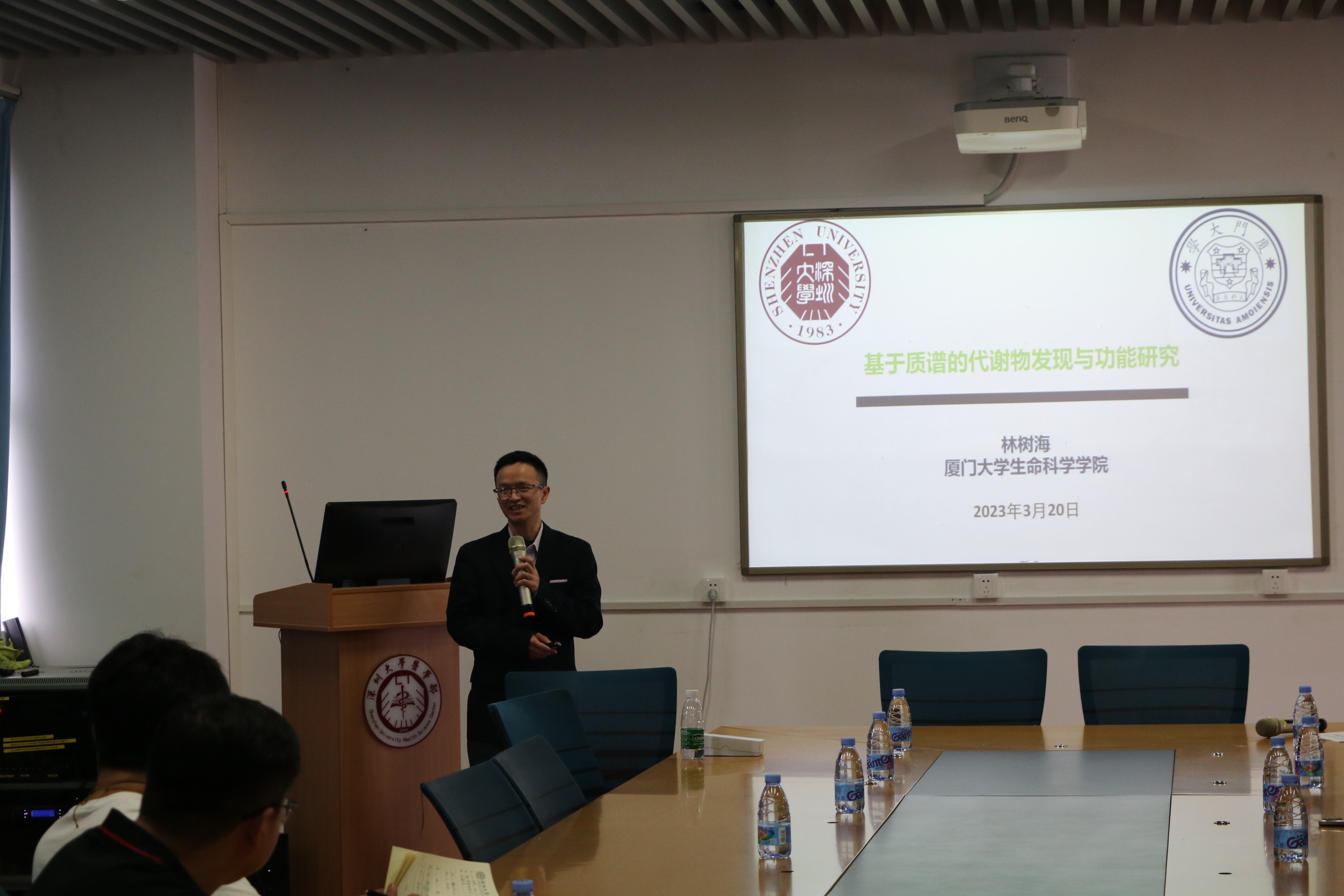 2023年3月20日上午,应球盟会QMH(中国)官方网站 基础医学院陈心春教授邀请,厦门大学生命科学学院林树海教授作为深圳大学40周年校庆800场学术活动(第376场)、基础医学专家讲堂(四十八)嘉宾,在深圳大学丽湖校区A7-551会议室开展了题为“基于质谱的代谢物发现与功能研究”的学术报告。讲座由陈心春教授主持,吸引了来自学院50余名师生的积极参加。