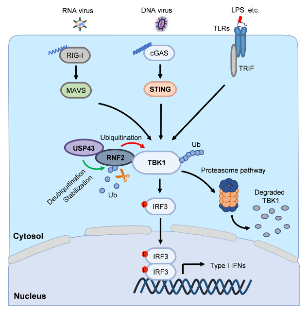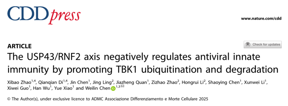 陈玮琳教授团队在 Cell Death & Differentiation发表USP43/RNF2轴调控抗病毒固有免疫研究成果