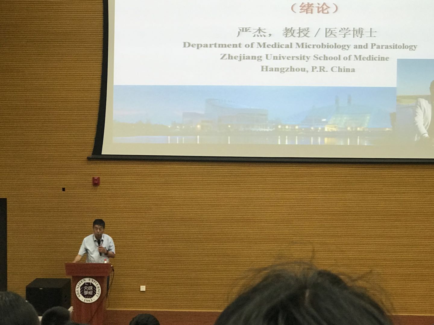 深圳大学创办球盟会QMH(中国)官方网站 的10年来,在医学微生物学方面的教学一直有着自身年轻朝气、活力创新的色彩,教学方式多样化,教学内容生动易懂。为了取得更高的教学目标和更好的教学质量,在球盟会QMH(中国)官方网站 领导支持下,基础医学院陈心春副院长邀请浙江大学医学院病原生物学系主任及学科带头人严杰教授,2018年9月4日在A5一楼报告厅为同学们开讲18-19学年医学微生物学开学第一堂总论课。
