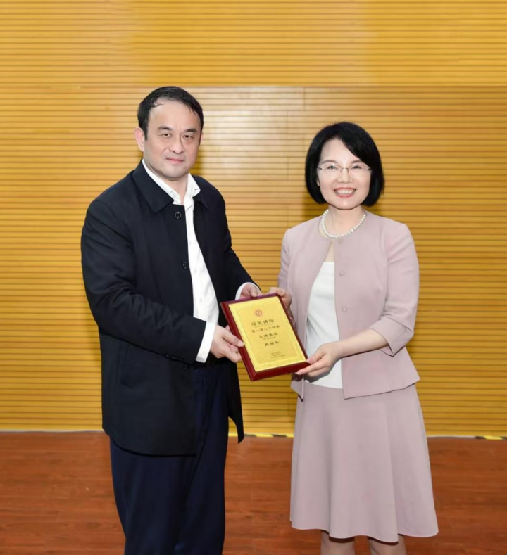 On December 4, 2024, at the invitation of Professor Peng Huang from the School of Biomedical Engineering at Shenzhen University Medical School, Professor Rui-Ping Xiao, Chair Professor at Peking University, Dean of the College of Future Technology, and Associate Editor of the New England Journal of Medicine, was invited as the 124th guest speaker of the "Deep Medicine Lecture." She delivered an academic presentation titled "Empowering New Drug Research and Development with Translational Medicine" in the lecture hall on the first floor of the Shouzhong Building (A5) at the Lihu Campus. The forum was chaired by Professor Peng Huang, and Vice President Hui Zhou attended in person. The forum attracted a large audience of faculty and students from various colleges of Shenzhen University, the Chinese Academy of Sciences Shenzhen Institute of Advanced Technology, Peking University Shenzhen Graduate School, and other institutions.