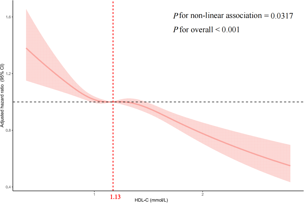 图 1 HDL-C与CD4+ T细胞恢复呈非线性负相关关系