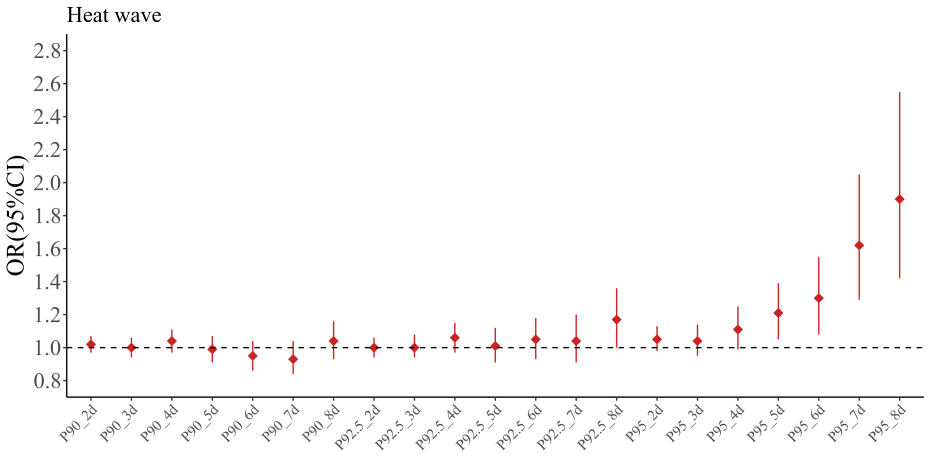 热浪和PM2.5暴露导致心血管疾病死亡风险增加。减少热浪和PM2.5暴露可能会带来显著的健康益处,并预防相当一部分由于心血管疾病导致的过早死亡。同时,研究结果强调在构建热浪预警系统时应考虑PM2.5污染,以获得更大的健康收益。本研究得到了国家自然科学基金(81973004)、广东省自然科学基金(2023A1515012744)和深圳市医学专项基金博士生项目(A2302033)的资助。