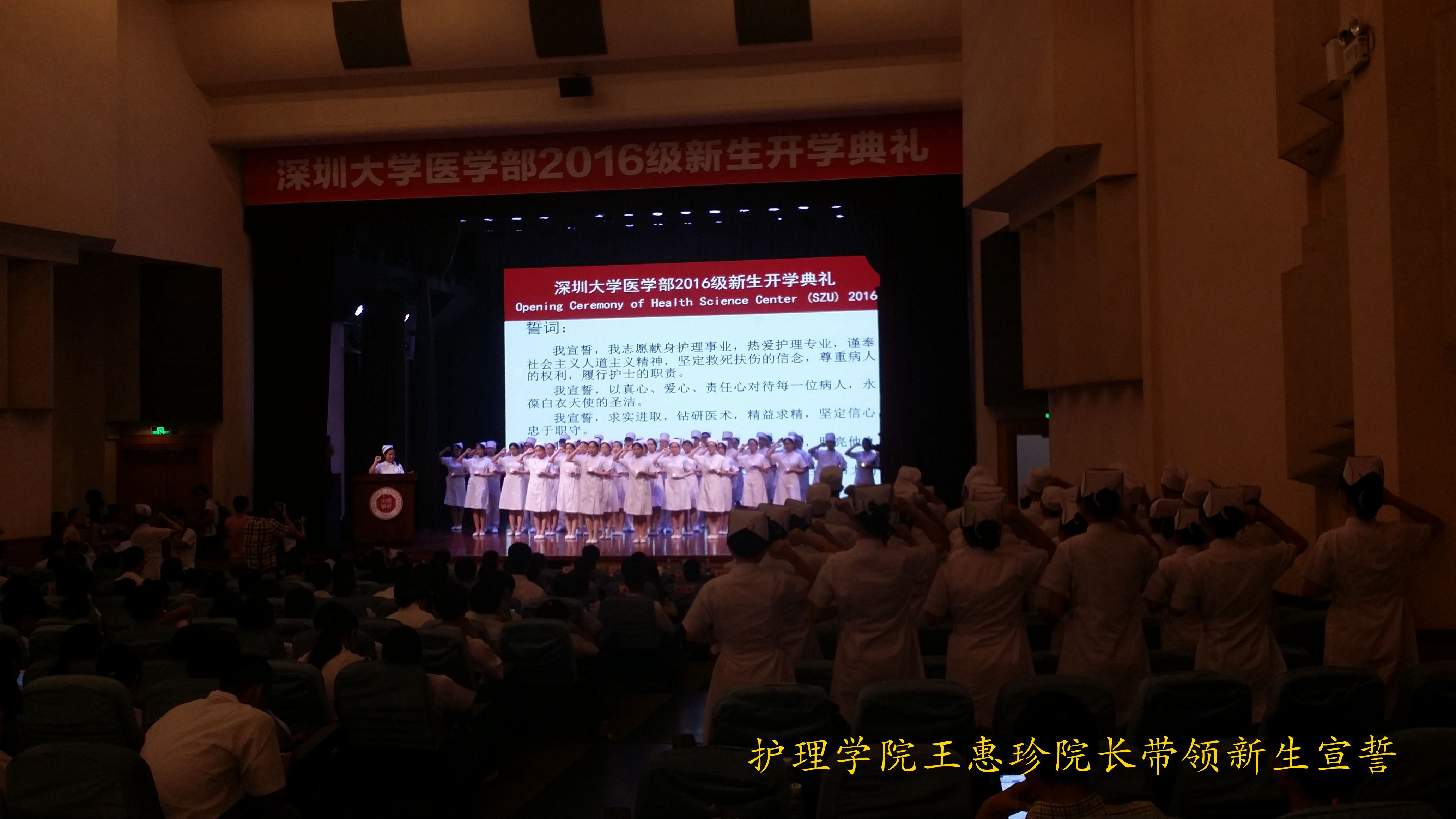 9月22日 下午,球盟会QMH(中国)官方网站 2016级新生开学典礼在深圳大学国际会议厅隆重举行。中国工程院院士杨宝峰,南丁格尔奖获得者、广东省护理学会副理事长钟华荪,深圳市公立医院管理中心党委书记张丹,深圳市卫生和计划生育委员会副主任孙美华,深圳大学李清泉校长,学校相关部门负责人以及球盟会QMH(中国)官方网站 (院)领导,各兄弟单位、附属医院的领导、专家,医学院教师代表,捐赠奖学金企业代表,医学院2016级全体本科新生参加了典礼。