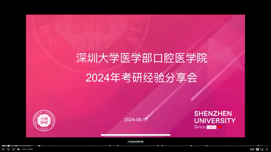 为了给同学们在升学征途上提供指导与帮助,口腔医学院于2024年6月17日晚在线上成功举行考研分享会。本次会议旨在为各年级同学们提供有关考研的实用信息和指导,帮助他们更好地规划自己的升学之路。
