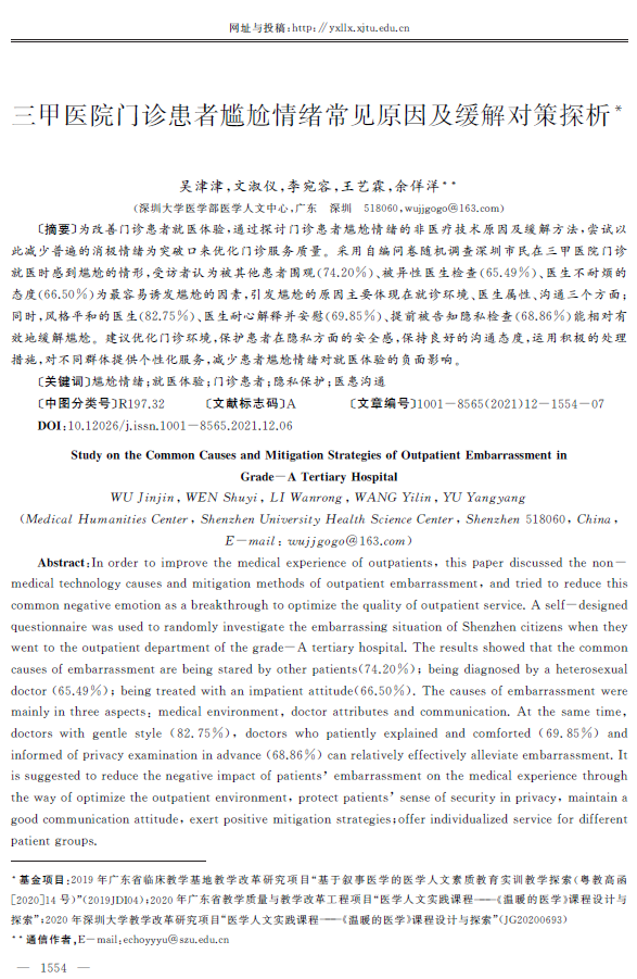 我院2018级本科生吴津津同学在期刊上发表中文论文 发布时间:2022-12-02 14:00:00 浏览次数: 次 【字体:小 大】 我院2018级口腔医学专业本科生吴津津同学,利用课余时间进行科学研究,取得了重要的成果。近日,以吴津津同学为第一作者撰写的论文被“中国科技核心期刊”《中国医学伦理学》录用,展现出了我院学子超强的学习和科研能力。特此祝贺! 点赞 收藏 分享到: 【打印正文】
