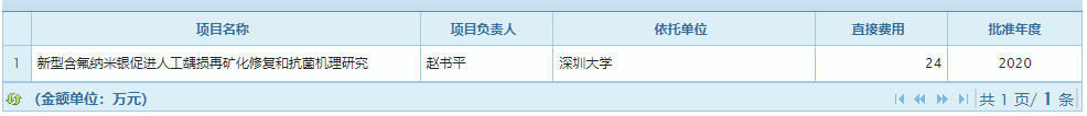 口腔医学院助理教授赵书平喜获2020年度国自然青年基金项目 发布时间:2021-11-05 16:56:08 浏览次数: 次 【字体:小 大】 口腔我院助理教授赵书平博士喜获2020年度国家自然科学基金青年科学基金项目资助,该项目课题为“新型含氟纳米银促进人工龋损再矿化修复和抗菌机理研究”,重点研究新型含氟纳米银的修复和抗菌机理,为新型材料的应用推广奠定基础,项目执行期3年,获资助经费24万元。 点赞 收藏 分享到: 【打印正文】