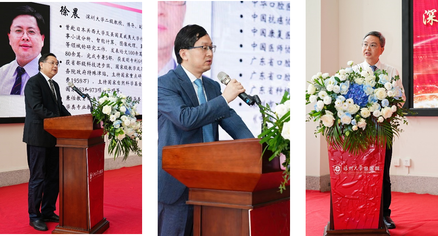 深圳大学副校长徐晨进行致辞       深圳市口腔医学会会长杨宏宇进行致辞 深圳大学总医院党委书记柴金龙进行致辞