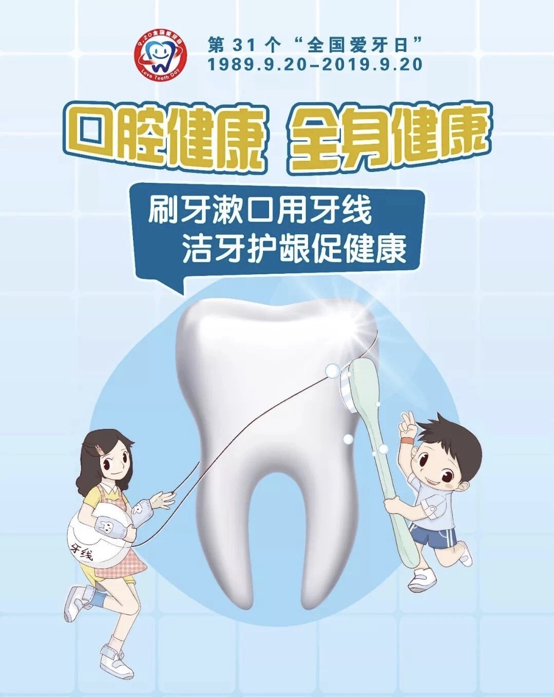 “全国爱牙日”是由中国卫生部、教委等部委于1989年联合签署设定的节日,举办时间为每年的9月20日,每一年都会设定一个主题。今年是第31个“全国爱牙日”,活动主题是“口腔健康,全身健康”,副主题为“刷牙漱口用牙线,洁牙护龈促健康”。