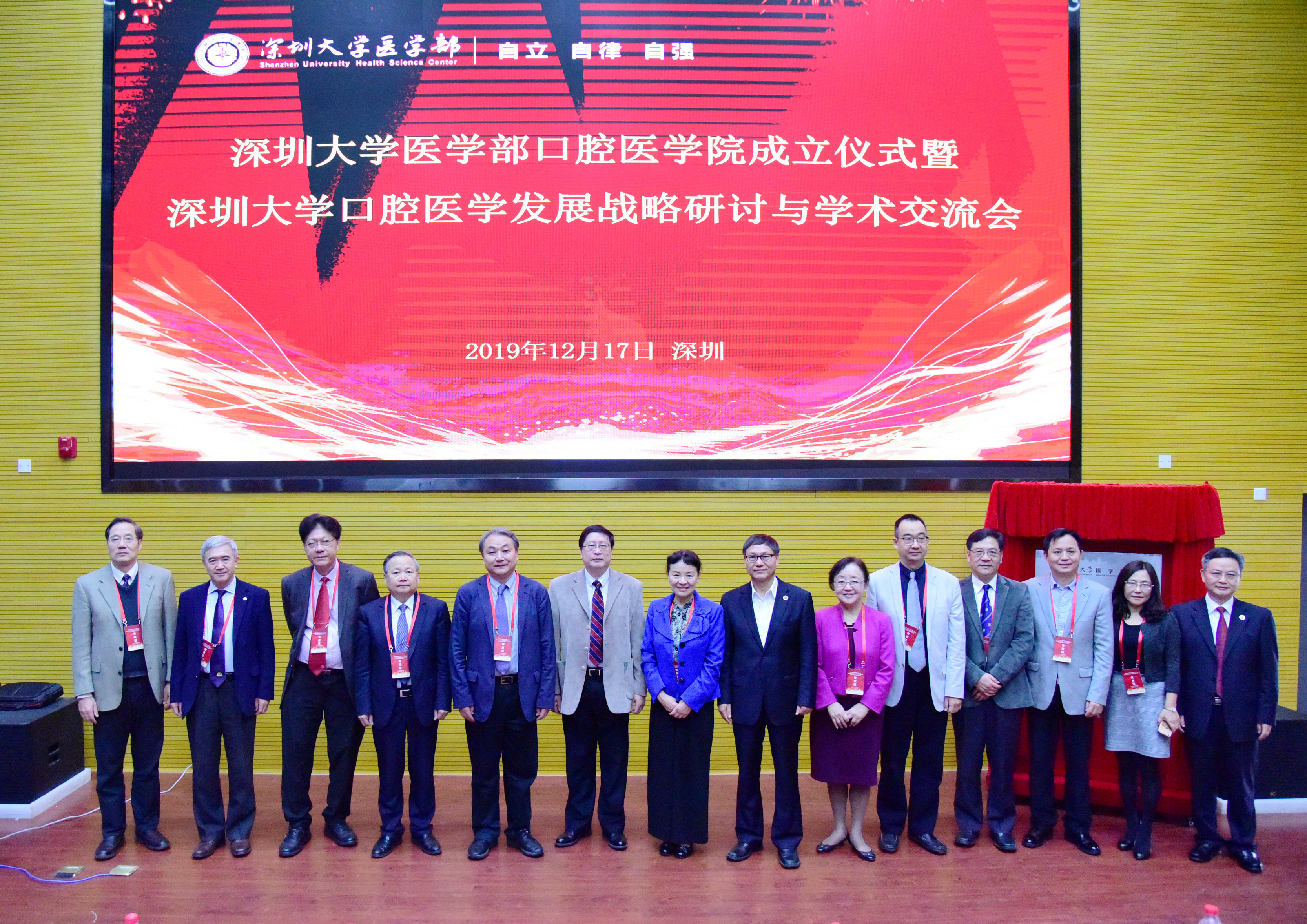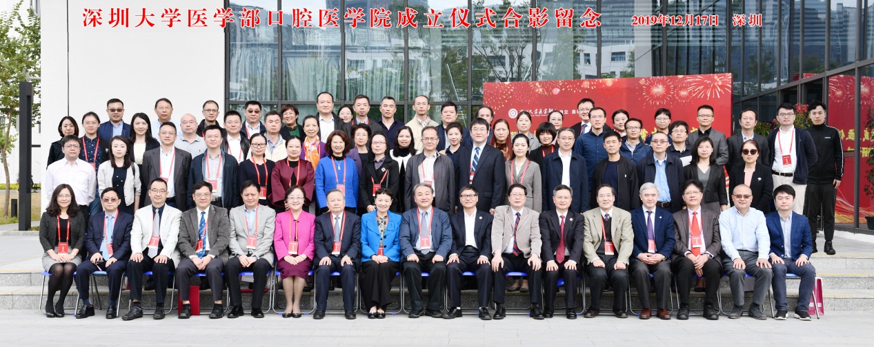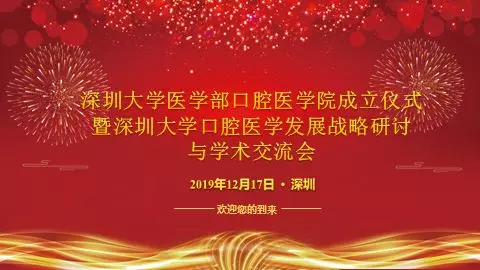 初冬时节逢盛会,鹏程深大迎嘉宾。2019年12月17日,球盟会QMH(中国)官方网站 口腔医学院成立仪式暨深圳大学口腔医学发展战略研讨与学术交流会在我校丽湖校区A5报告厅隆重召开。中国科学院院士、首都医科大学副校长王松灵教授,四川大学口腔医学院学术院长、口腔疾病研究国家重点实验室主任周学东教授,中华口腔医学会名誉会长赵铱民教授,中华口腔医学会副会长、广东省口腔医学会会长凌均棨教授,四川大学华西口腔医学院副院长石冰教授,中华口腔医学会副会长、空军军医大学陈吉华教授,武汉大学口腔医学院副院长陈智教授,广东省口腔医学会名誉会长黄洪章教授,香港大学牙医学院张成飞教授,深圳市口腔医院书记张强教授,深圳大学副校长张学记教授、球盟会QMH(中国)官方网站 主任朱卫国教授、教务部副主任陈文、科学技术部副主任彭珏、研究生院副院长李国、基建部副主任刘泽慧等出席会议,参加会议的还有深圳市教育局、深圳市发改委代表,深圳大学各附属医院、教学医院口腔科领导,球盟会QMH(中国)官方网站 及各二级学院领导,口腔医学院师生等约110人。会议由球盟会QMH(中国)官方网站 党委书记柴金龙主持。