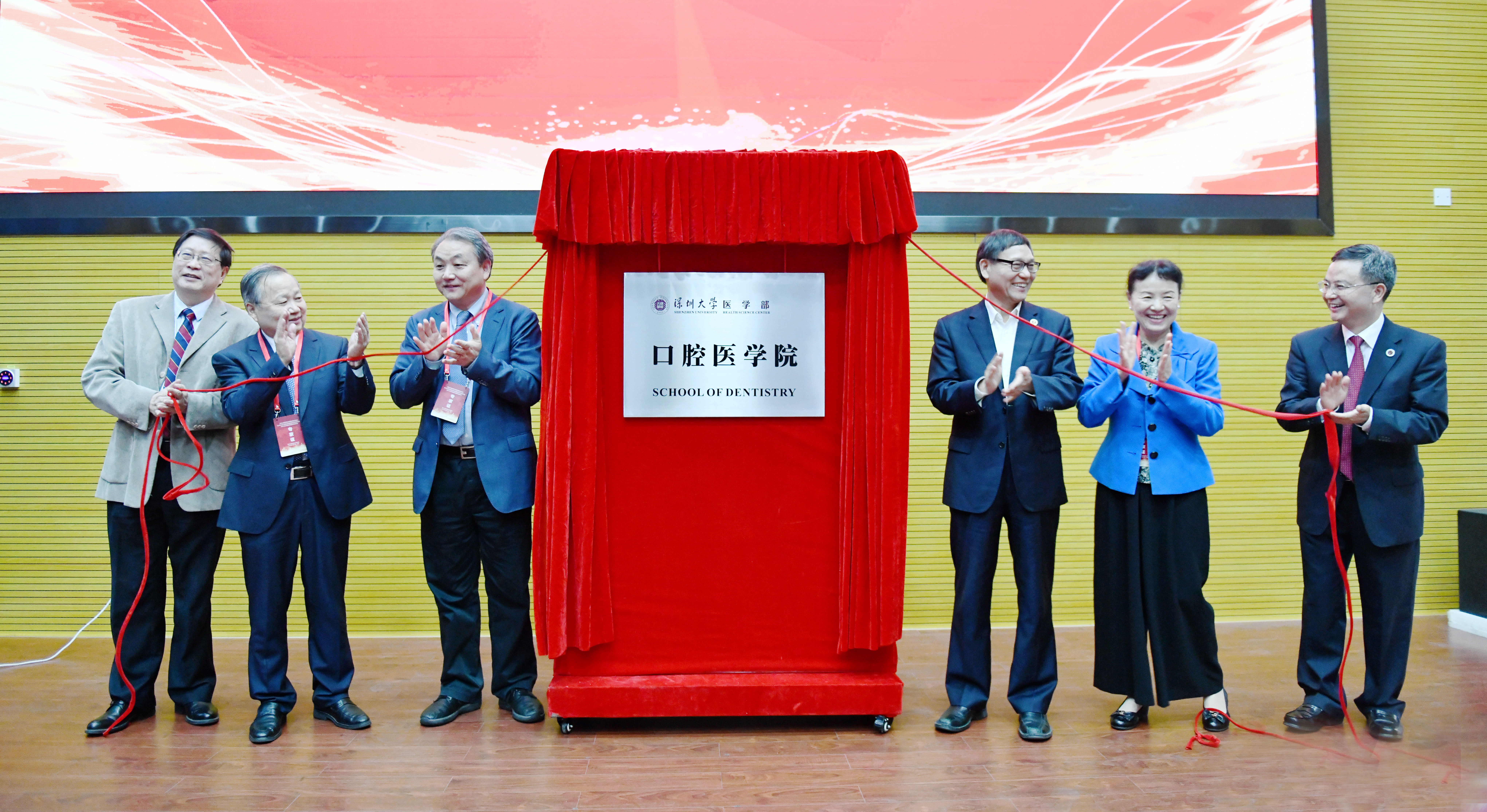 最后,张学记代表深圳大学对球盟会QMH(中国)官方网站 口腔医学院的成立表示热烈的祝贺,同时对球盟会QMH(中国)官方网站 口腔医学院长期支持的各位专家、领导表示衷心的感谢。他说,深圳大学是年轻的学校,当年建校、当年招生,形成了深圳速度,而球盟会QMH(中国)官方网站 用了半年时间筹备口腔医学院,因此我们创造了两个深圳速度。口腔医院的建设非常重要,需要深圳大学各部门的紧密配合与支持,也需要深圳市委市政府的高度重视以及各相关部门的大力支持。张学记的致辞为本次开幕式画上了完美的句号。
