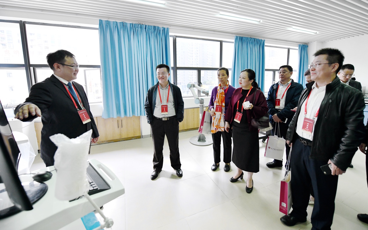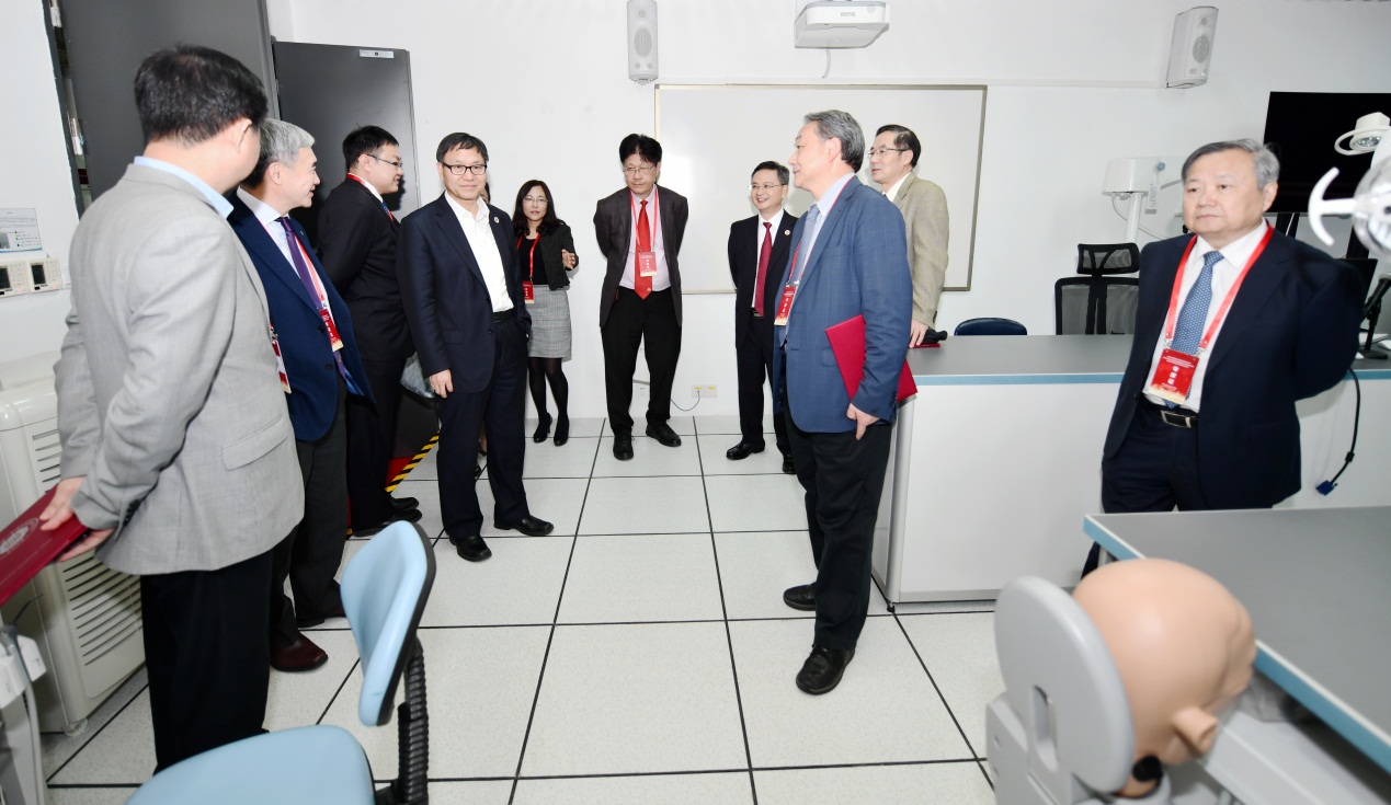 参加会议的专家和来宾还先后考察了口腔医学院教学实验室,其中包括口腔显微镜及技工实训室、口腔虚拟仿真教学实训室、人工智能牙科机器人、仿真人头模多媒体互动实训室和口腔临床前技能实训室。专家们给予我院现代化口腔医学教学设备高度赞扬并对实验室建设提出了宝贵的意见。