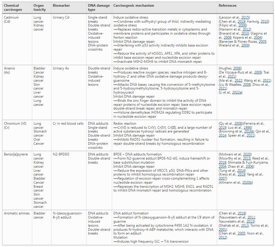 Table 1 DNA damage repair and carcinogenic mechanism of chemical carcinogens