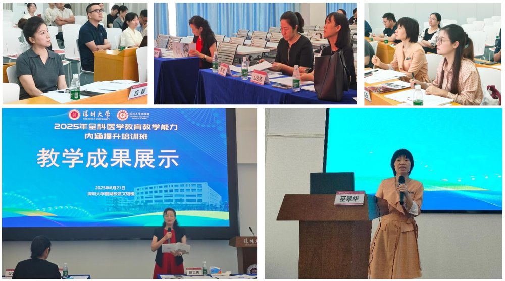 培训最后环节,全体学员分批次在深圳大学丽湖校区文韬楼聚萤厅、映雪厅进行教学成果展示与考核汇报。应颖教授、巫翠华教授、阳世伟教授等6位专家担任评委,对学员5分钟小讲课展示及规范本科生教学教案进行专业评分。阳世伟主任、巫翠华主任分别在两个会场对学员表现进行精准点评,既肯定教学亮点,也针对性提出改进建议。结合线上必修12学时、选修4学时的学习成果,全体学员均以优异成绩通过考核。