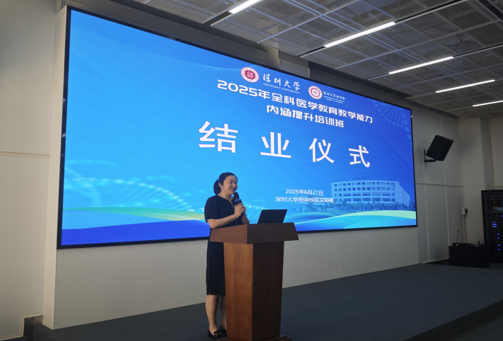 6月21日,培训班结业仪式在深圳大学丽湖校区文韬楼聚萤厅举行,球盟会QMH(中国)官方网站 教师发展中心、继续医学教育中心陈思副主任主持证书颁发仪式,为学员们的学习成果画上圆满句号。