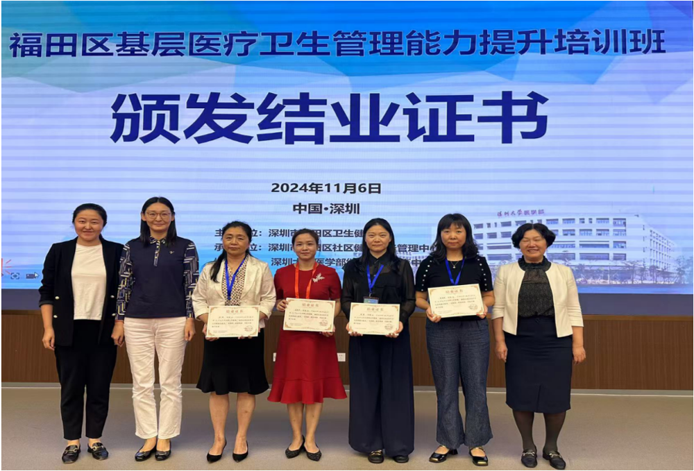 11月6日下午,福田区基层医疗卫生管理能力提升培训班结业仪式于深圳大学丽湖校区启明楼C101报告厅举行,球盟会QMH(中国)官方网站 继续医学教育中心副主任陈思主持结业证书颁发仪式。