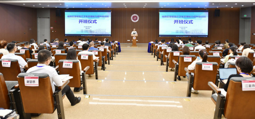 2024年10月29日-10月30日、11月5日-11月6日,福田区基层医疗卫生管理能力提升培训班—深圳大学理论培训阶段在深圳大学丽湖校区举办。10月29日上午,在深圳大学丽湖校区启明楼D101报告厅举行理论培训开班仪式。莅临本次培训会开班仪式的领导和专家有福田区卫生健康局党组书记、局长黄舜艳,福田区卫生健康局副局长尹志文,球盟会QMH(中国)官方网站 执行主任许兴智,福田区卫健局社康科科长钟浩,福田区社区健康服务管理中心主任邓凯杰,中山大学附属第八医院工会主席张焕基。开班仪式由球盟会QMH(中国)官方网站 副主任、继续医学教育中心主任王子梅教授主持,球盟会QMH(中国)官方网站 执行主任许兴智教授致欢迎词,福田区卫生健康局局长黄舜艳对本次培训顺利举行表示诚挚肯定,并对培训班学员寄予殷切期望。