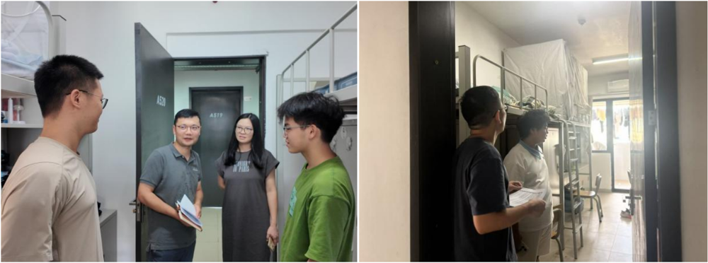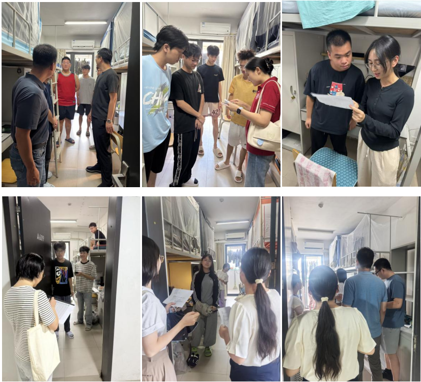 走访中,辅导员逐项排查卫生与安全隐患,叮嘱大家严守宿舍管理规定,共建温馨和谐之家;学生党支部书记鼓励同学们积极参加党团活动,向先锋模范看齐,为同学办实事;班主任则呼吁大家走出宿舍、走向操场,做到学习、体育两不误,用充沛的体魄为高效学习“充电蓄能”。