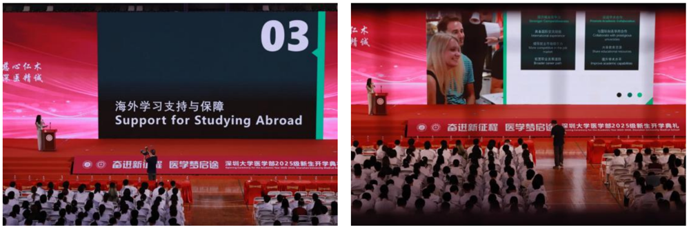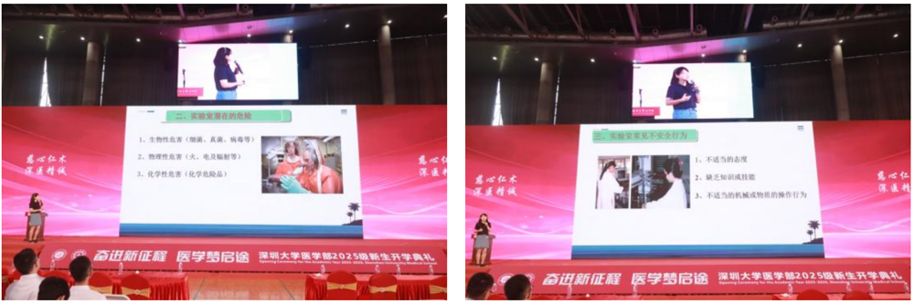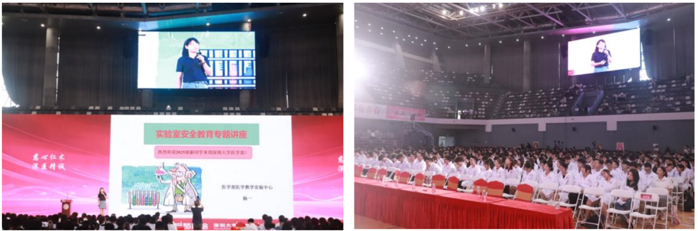 9月7日上午,球盟会QMH(中国)官方网站 在至畅体育馆举行2025级新生开学典礼。典礼结束后,2025级本科生、研究生新生共同参加了由医学教学实验中心杨一老师主讲的实验安全教育与实践讲座,以及由国际交流与项目合作部范琦老师介绍的海外交流学习项目专题讲座。两场讲座内容详实、实用性强,为新生即将开启的大学生活提供了重要的指导和保障。