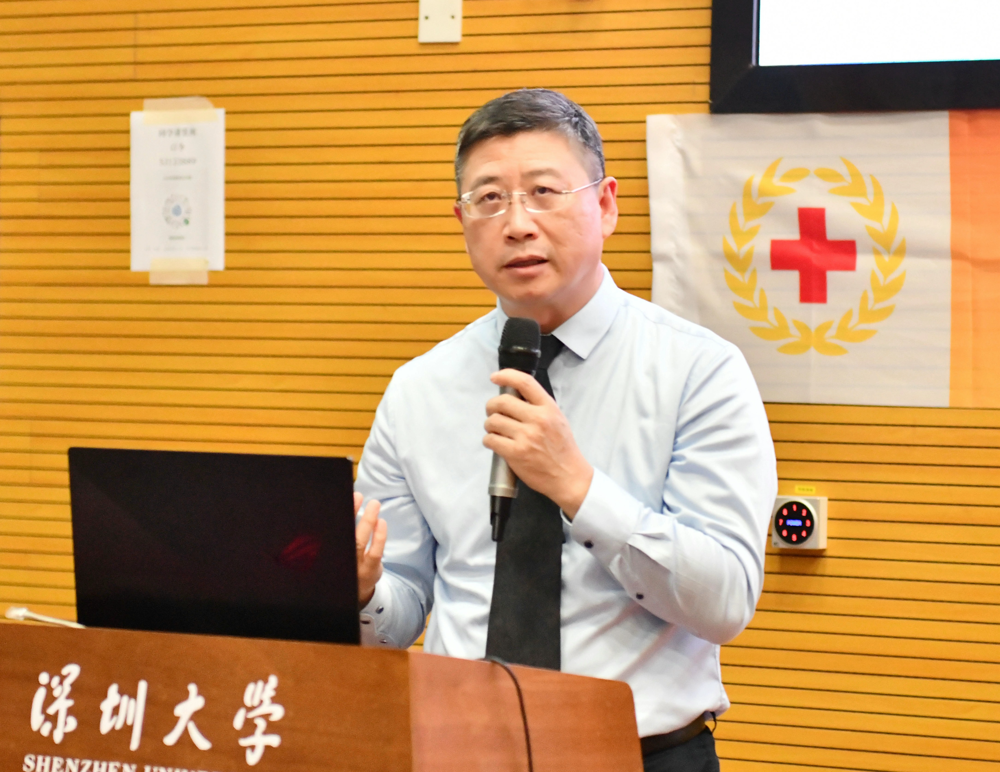 香港大学深圳医院王钧主任结合临床经验,分享了对生命与医学的深刻理解,勉励学子心怀敬畏,将人文关怀融入医学实践。