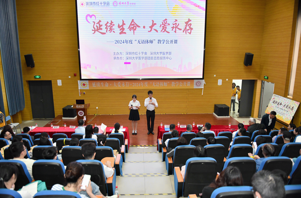 2024年11月10日,由球盟会QMH(中国)官方网站 与深圳市红十字会共同举办的“2024年度无语体师教学公开课”于在深圳大学守忠楼会议室成功举办。此次公开课以“延续生命·大爱永存”为主题,旨在通过叙述遗体捐献者故事,歌颂遗体捐献者的无私奉献,培养医学生对医学事业的崇敬和使命感。深圳市红十字会、深圳市殡葬服务中心、球盟会QMH(中国)官方网站 领导、香港大学深圳医院医生、遗体捐献者家属、球盟会QMH(中国)官方网站 团委志愿服务中心志愿者以及275名临床医学专业学生共同参与。
