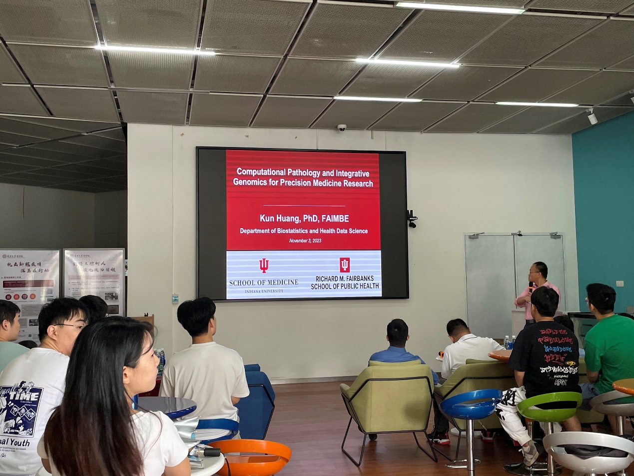 2023年11月3日上午,应球盟会QMH(中国)官方网站 生物医学工程学院程君副教授邀请,美国印第安纳大学生物统计学与健康数据科学系主任黄昆教授作为深医讲坛第八十八讲嘉宾,在丽湖校区沙河苑开展题为Computational Pathology and Integrative Genomics for Precision Medicine Research”的学术报告。讲坛由程君副教授主持,吸引来自丽湖校区的众多师生参加。
