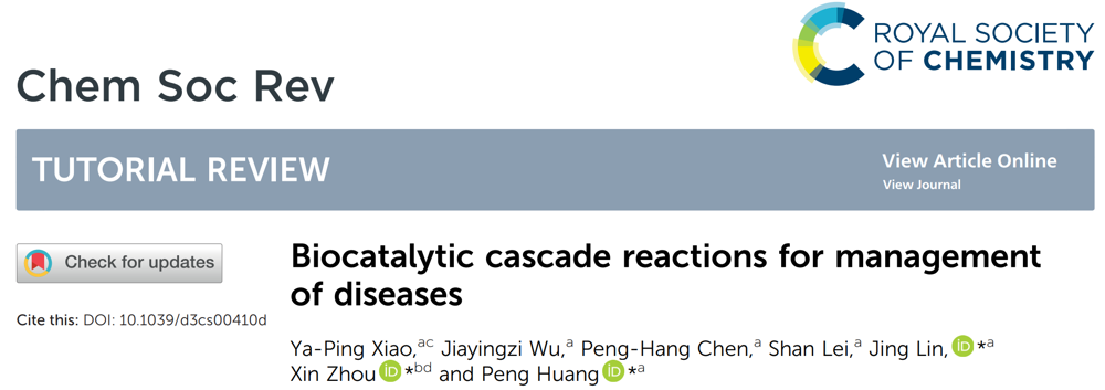 球盟会QMH(中国)官方网站 黄鹏教授团队以封面论文在Chemical Society Reviews发表生物催化级联反应用于疾病管理的研究成果