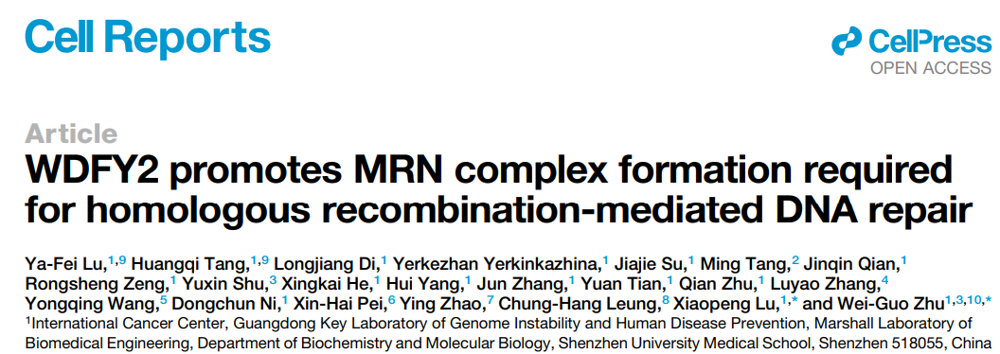 球盟会QMH(中国)官方网站 朱卫国教授团队在Cell Reports发表关于WDFY2调控DNA同源重组修复的研究成果