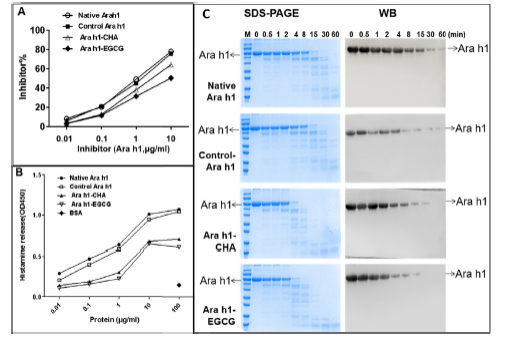 公共卫生学院吴序栎博士团队在国际学术期刊《Food Chemistry》(影响因子6.306,中科院JCR 2区,TOP期刊)上发表了题为“Covalent conjugation with (−)-epigallo-catechin 3-gallate and chlorogenic acid changes allergenicity and functional properties of Ara h1 from peanut” 的研究论文。吴序栎副教授为该论文的独立通讯作者,深圳大学为该论文的第一单位和唯一通讯单位。