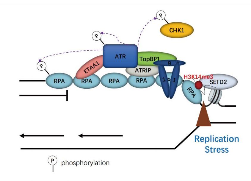 DNA复制压力条件下SETD2介导的H3K14me3调控ATR激活的信号通路