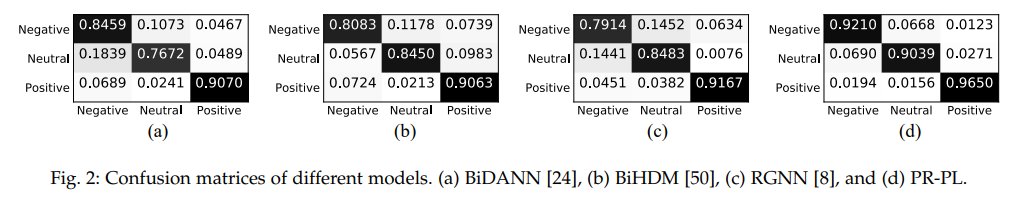 研究团队通过在情感脑机接口数据库上进行广泛的对比实验,对模型在跨被试和跨会话情绪识别任务中的可靠性和稳定性进行了验证。这一验证涵盖了四种不同的交叉验证方法,包括被试内跨会话、被试内会话内、跨被试会话内以及跨被试跨会话。广泛的实验结果表明,相对于现有的领先方法(SOTA),本文提出的PR-PL在所有四种交叉验证范式下都取得了显著优越的表现(如图二和图三所示)。此外,团队还全面验证了该模型在多样实验设置下的稳定性和泛化能力。实验结果明确显示(如图四所示),所提出的PR-PL在应对情感脑机接口中的个体差异和噪声标注问题方面具备明显优势。