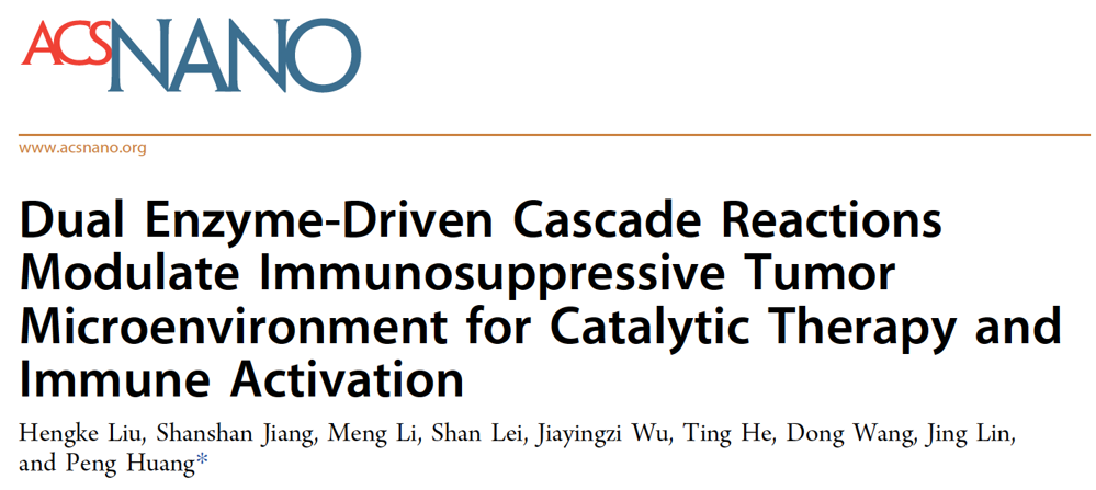 球盟会QMH(中国)官方网站 黄鹏教授团队在ACS Nano发表双酶级联反应调控肿瘤免疫微环境研究成果
