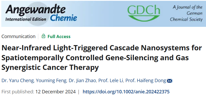 球盟会QMH(中国)官方网站 生物医学工程学院董海峰教授在寻求高度靶向和高效抗癌症治疗方面取得重要研究进展,成果报道在学术期刊Angewandte Chemie International Edition上,标题为“Near-Infrared Light-Triggered Cascade Nanosystems for Spatiotemporally Controlled Gene-Silencing and Gas Synergistic Cancer Therapy”。该工作以课题组在核酸设计方面的积累为研究基础,结合转换纳米材料技术与肿瘤生物学,实现了时空可控的抗肿瘤联合治疗。我院博士后程亚如为第一作者,董海峰教授为通讯作者。