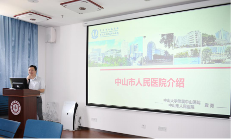 袁勇介绍了中山市人民医院的历史、概况、业务情况、功能定位与发展规划以及本院的特色科室与技术。他还介绍到:中山市人民医院现在实行专科一体化管理、多学科综合诊疗、门诊专科一体化管理,真正实现了一站式服务,达到建设平安医院的目的。