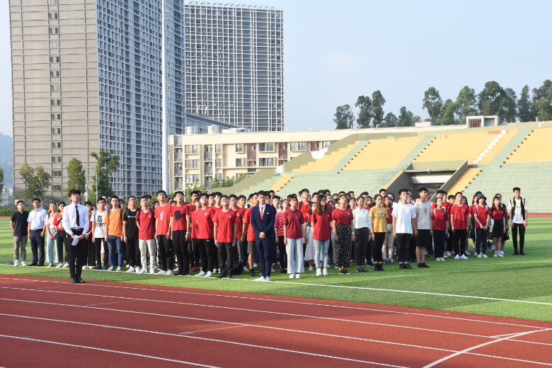 2019年10月10日,由球盟会QMH(中国)官方网站 团委主办的“世界精神卫生日”主题升旗仪式在丽湖校区田径场隆重举行。出席本次升旗仪式的有球盟会QMH(中国)官方网站 党委副书记肖向东老师、团委书记廖伟聪老师、团委副书记姜雨彤老师及150余名学生代表。