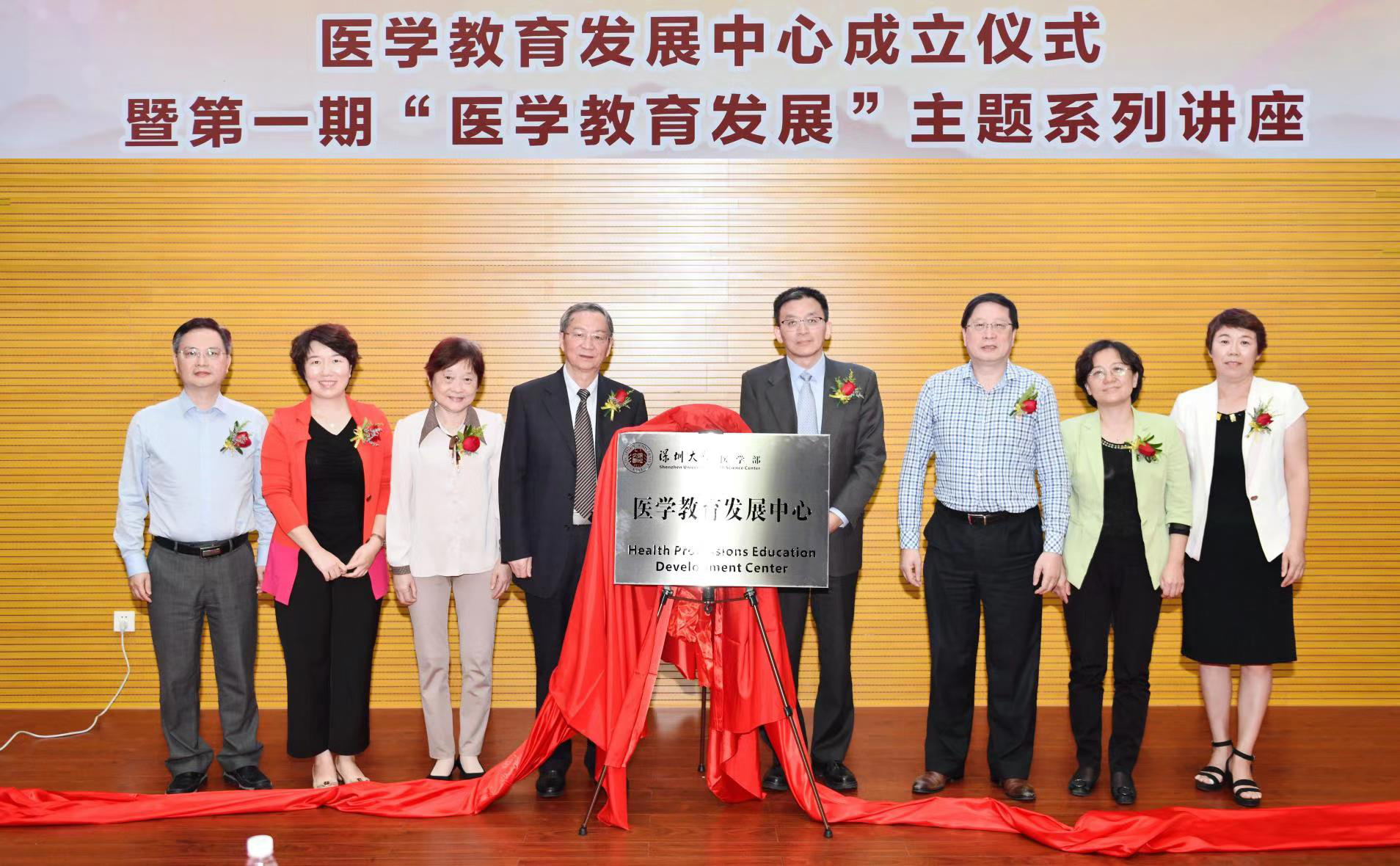 专家、学校教务部领导和球盟会 领导给医学教育发展中心成立仪式揭牌