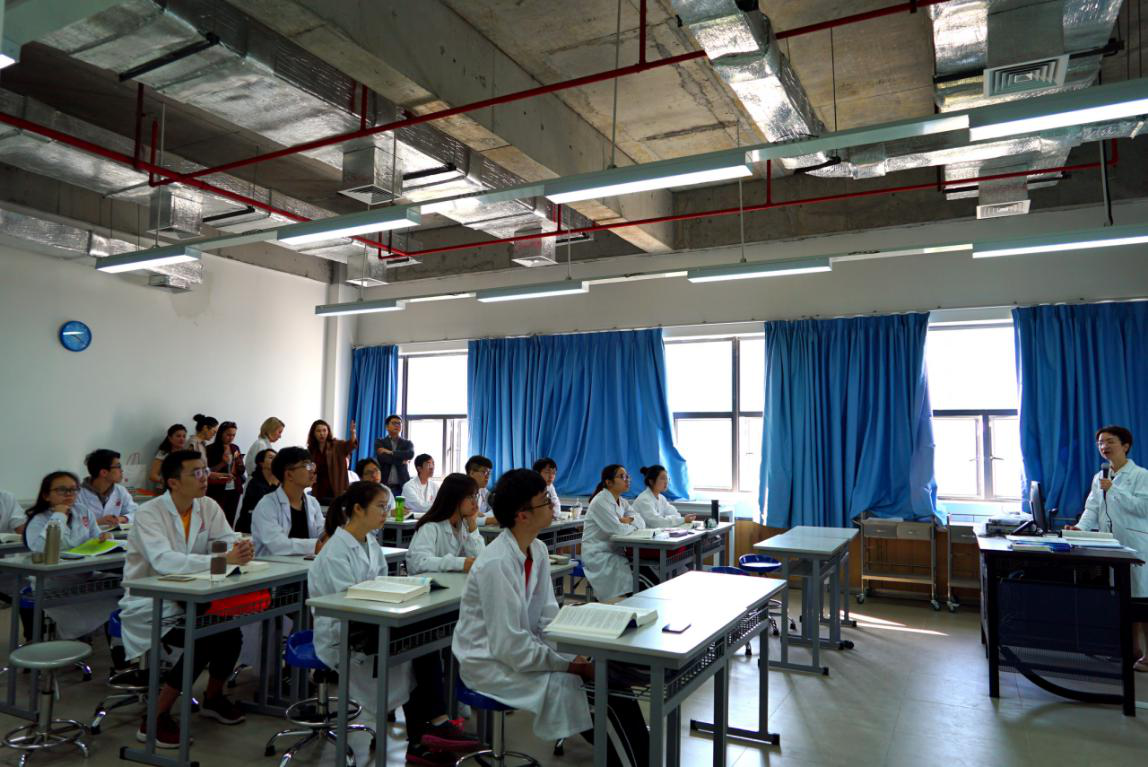 代表团一行十八人参观了球盟会QMH(中国)官方网站 临床技能中心,球盟会QMH(中国)官方网站 临床技能中心师生与到访嘉宾进行交流。来访嘉宾分组对临床技能中心课程进行了旁听。