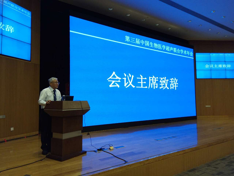 出席本次年会的有科技部生物中心主任肖诗鹰、中国超声医学工程学会领导李建国,中国声学学会生物医学超声工程分会、中国生物医学工程学会医学超声分会和中国超声医学工程学会仪器工程开发专业委员会的各位委员、以及全国生物医学超声及相关学科的专家、学者和工程技术人员、高校学生等近200人。本次年会共邀请十一位生物医学超声和超声医学领域知名专家做了特邀报告,交流范围涵盖生物医学超声前沿若干领域,主要包括超声换能器、超声分子成像和医学多模成像等。