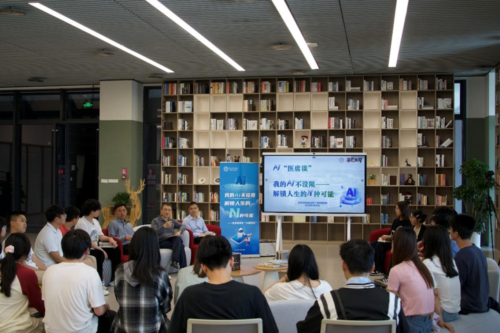 参加“医席谈”的同学们也展开了热烈讨论,分享了人工智能在各自学习和生活中的应用与思考。生物医学工程专业博士生宋豪杰认为,大模型在优化项目思路、分析内容、代码编写和数据处理等方面提供高效支持,但需警惕“AI幻觉”,甄别信息。硕士生温芯怡分享了人工智能在医疗领域如超声图像分类分割中的应用优势,同时指出算法偏倚可能导致误诊,强调需建立伦理评估框架。本科生李冰涵提出,AI虽提高医疗效率,但医生不会被取代,未来社会是人与AI协同工作,具备跨学科知识的人更具竞争力。生物医学工程专业本科生梁志聪认为AI是“第二大脑”,大学生需保持独立思考,理解算法逻辑,主动学习运用工具,成为复合型人才,关注现实问题。基础医学专业硕士生丁文龙指出AI在智力层面超越人类,提醒警惕信息失真,强调人类应保持智力优势认知,AI引发职业进化。药学专业本科生郑沐琛分享了国产大模型DeepSeek的崛起,强调生物信息学重要性,呼吁科研工作者将技术创新转化为民生福祉。公共卫生专业硕士生钟桦骏回顾了AI在疫情防控中的应用,从区域封锁到精准定位的转变,以及AI在实验设计和结果优化中的辅助作用,提醒学生使用AI时需判断信息真实性。