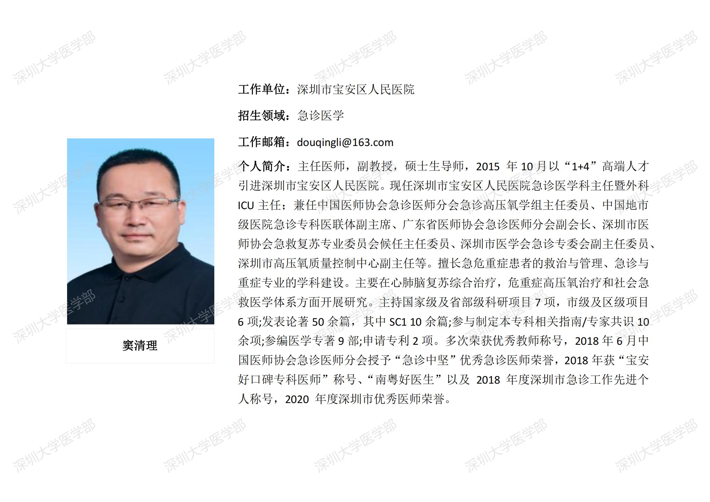球盟会QMH(中国)官方网站 临床医学专业硕士研究生导师简介--宝安人民医院