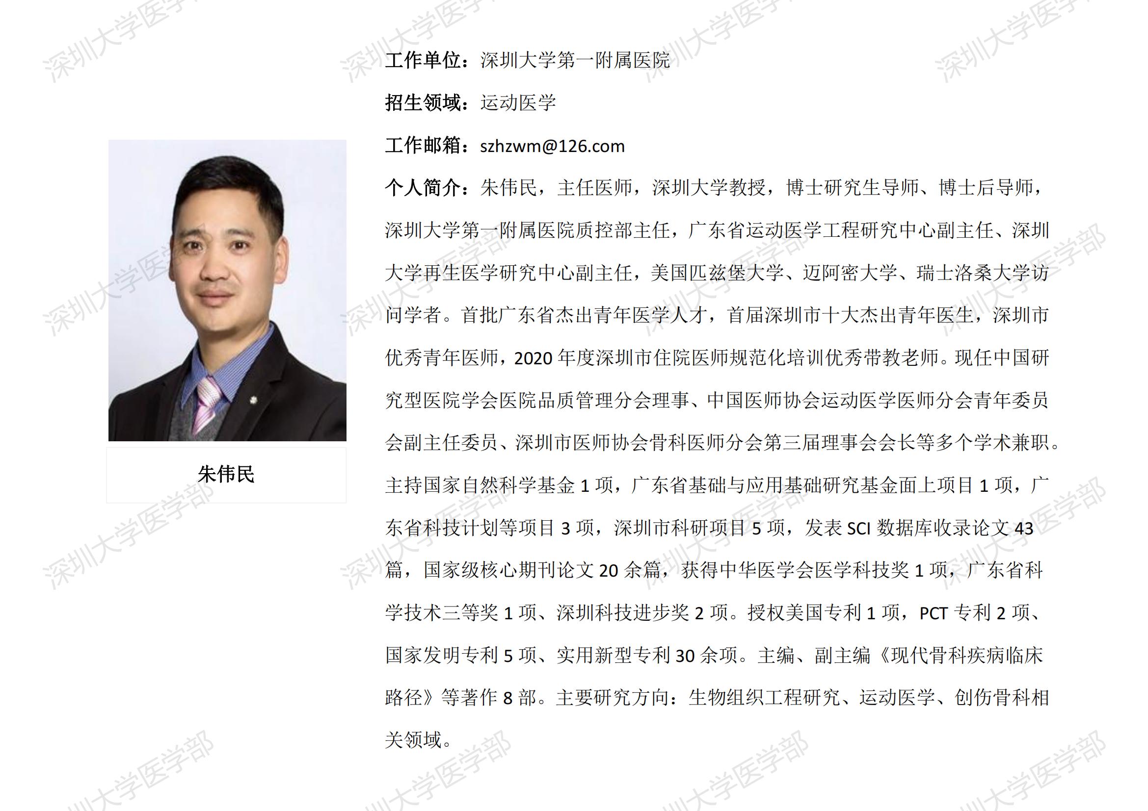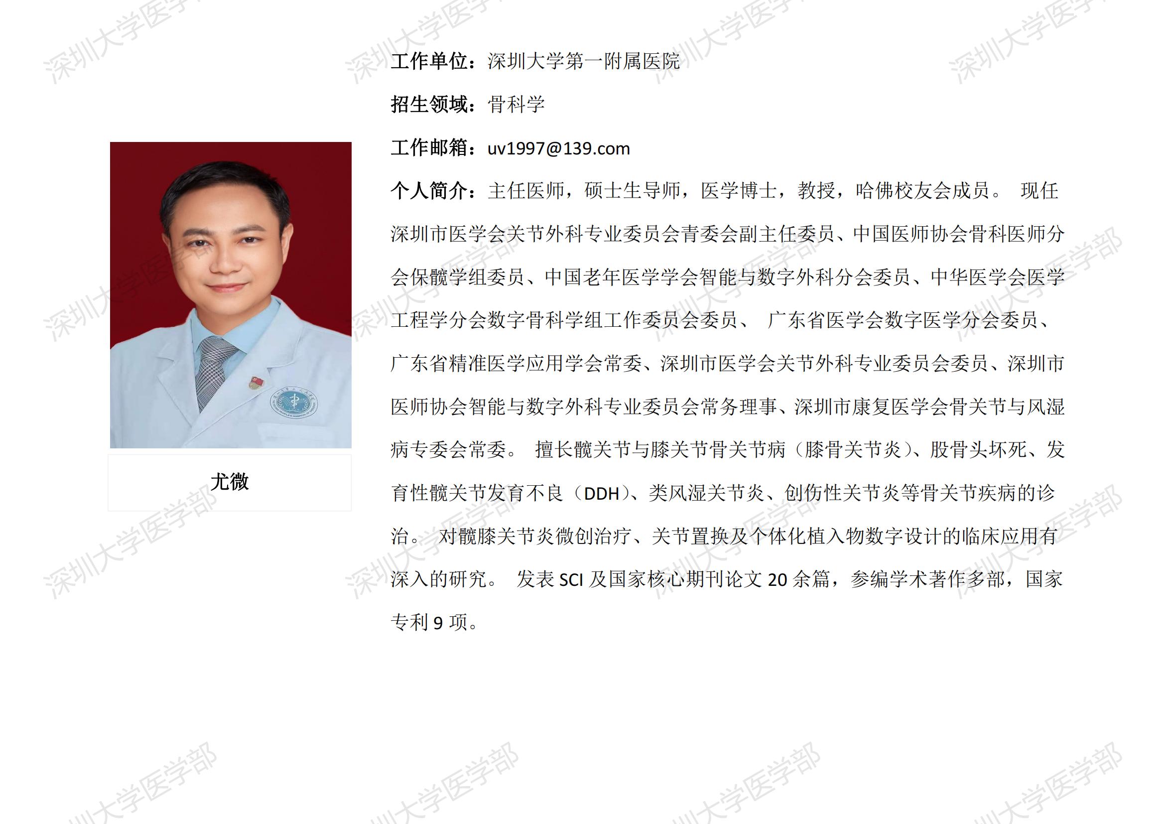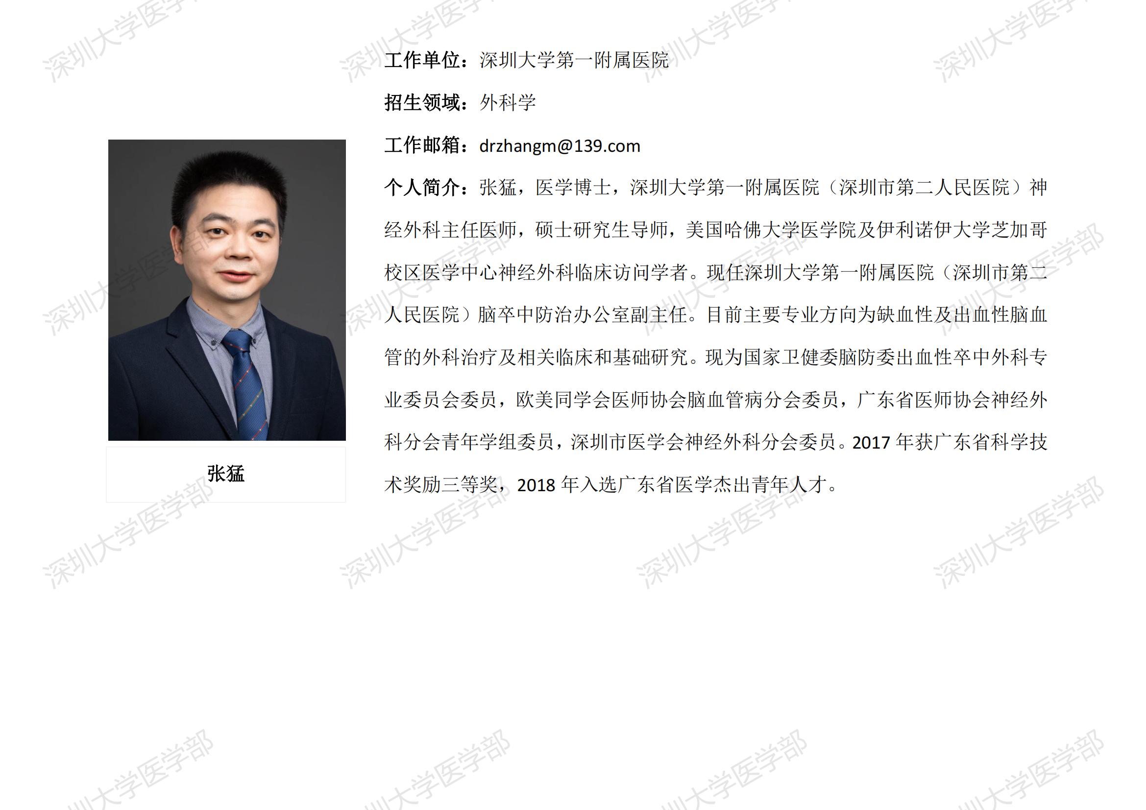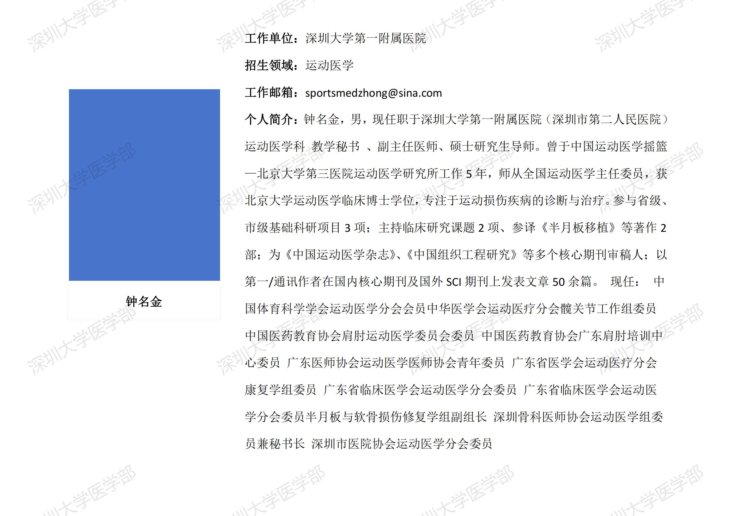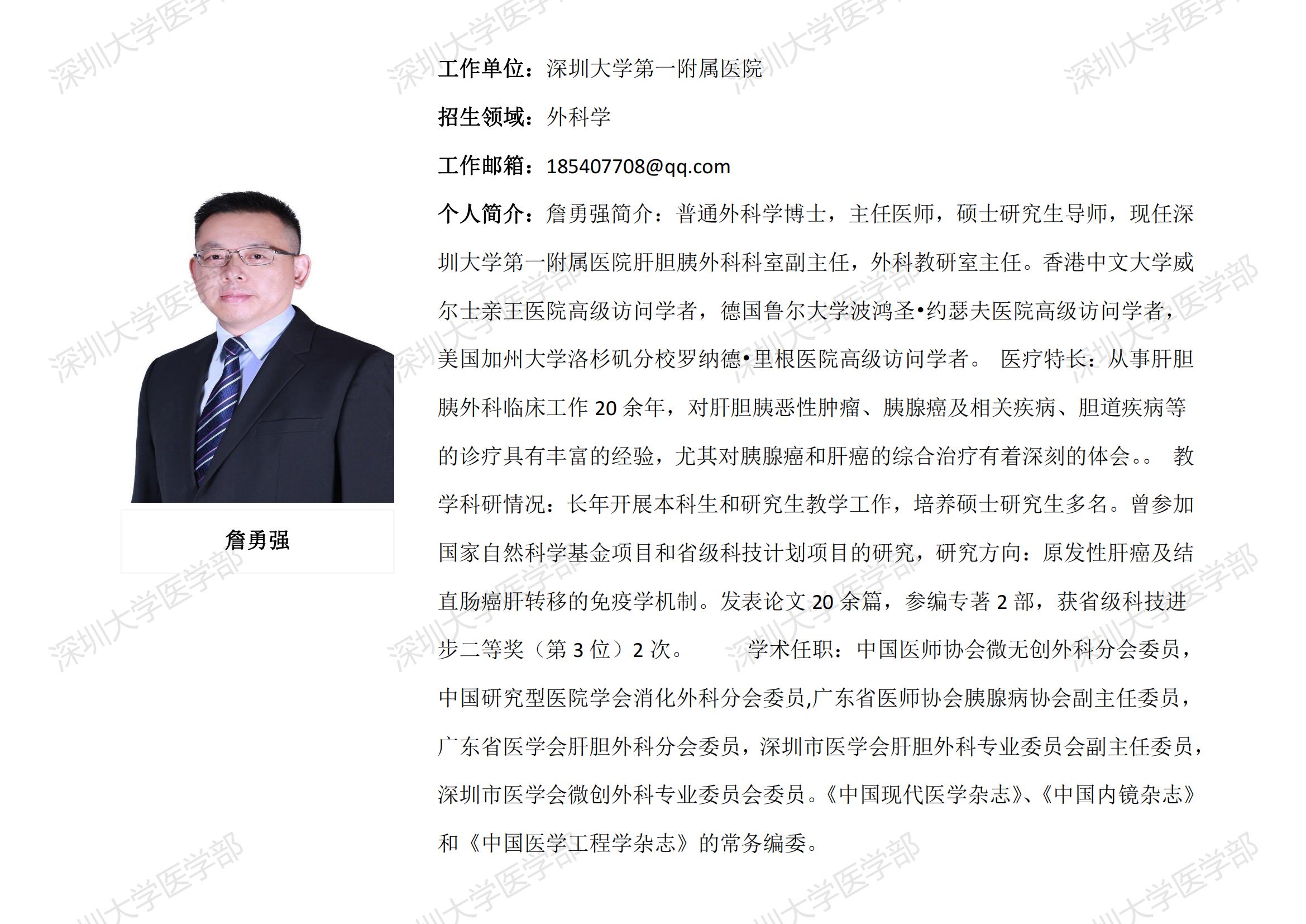 球盟会QMH(中国)官方网站 临床医学专业硕士研究生导师简介--深圳大学第一附属医院
